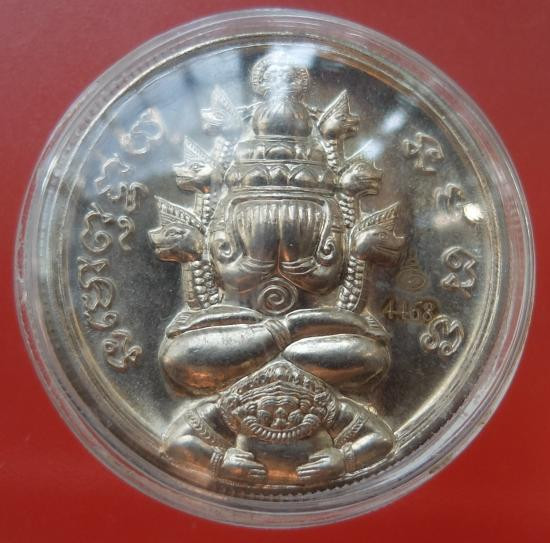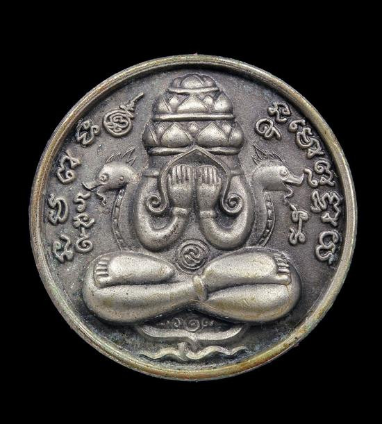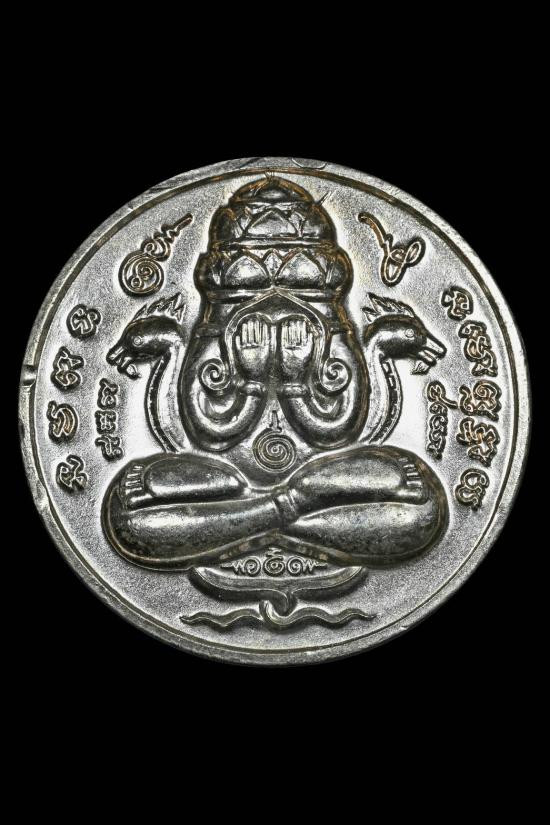 เหรียญปิดตาพระโพธิสัตว์พังพะกาฬ เนื้อทองขาวเคลือบเงินผิวโบราณ เลข590 ตอกสองโค๊ตแยกชุดพิเศษกรรมการ 9 รอบ 9 พิธี 108 ปี ท่านขุนพันธ์ จ.นครศรีธรรมราช ปี 2549 |