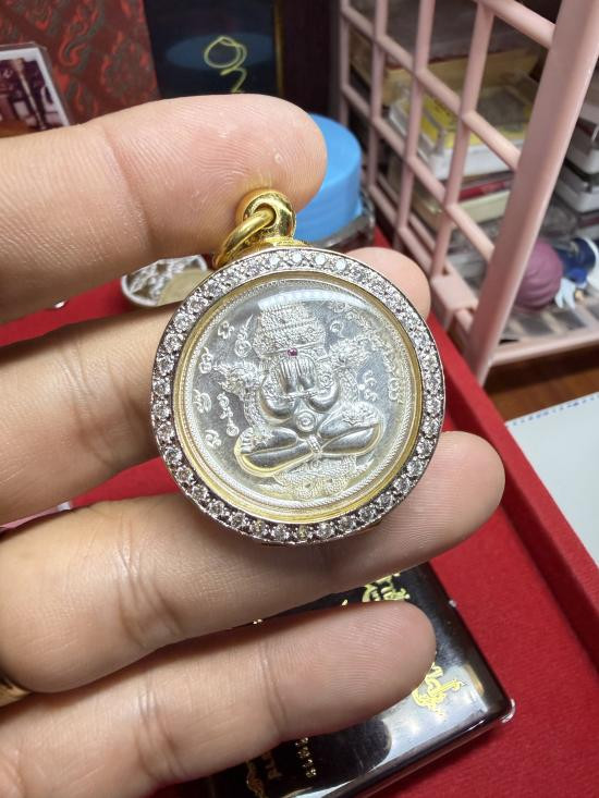 เหรียญพังพะกาฬรุ่น เจ้าสัวพันล้าน รายการที่38เนื้อกะไหล่เงิน ฝังพลอยเเดง เลขโค๊ต73 พร้อมกรอบอิตาลี่ |