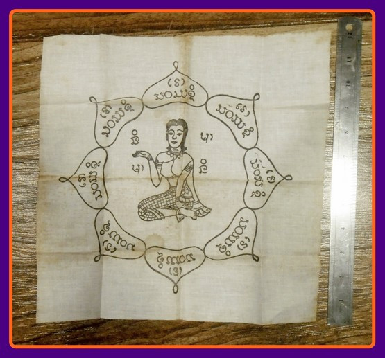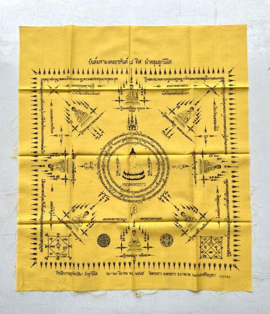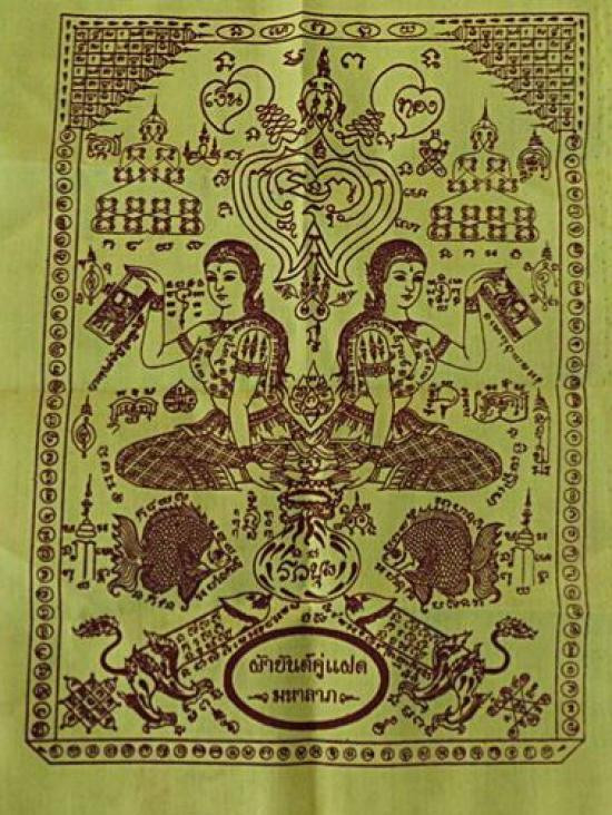 ผ้ายันต์สีเหลืองนางกวักคู่แฝดมหาลาภ วัดสว่างภพ จ ปทุมธานี