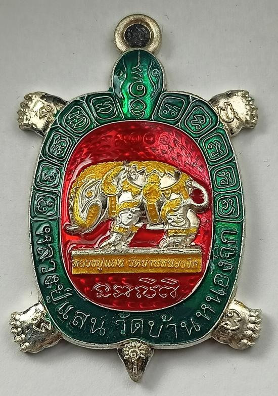 เหรียญพญาเต่าหมูพลิกแผ่นดิน "รวยทางเดียว 168" หลวงปู่แสน วัดบ้านหนองจิก เนื้อเงินลงยา เบอร์ 10 พร้อมกล่องเดิมครับ (เหรียญหนัก 27.58 กรัม) |