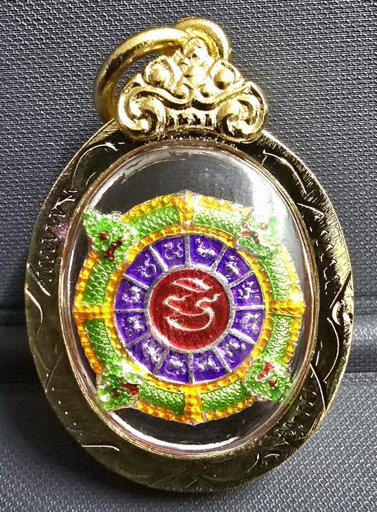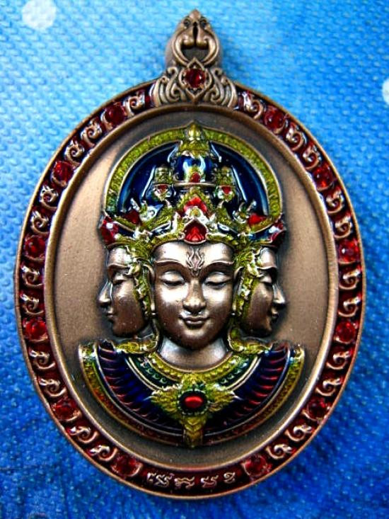 เหรียญพระพรหม รุ่นพรหมประกาศิต เนื้อทองแดงซาตินลงยาขอบฝังพลอย 13 เม็ด ลงยาเครื่องทรง หมายเลขโซนวันเกิดเลข ๗ หลวงปู่เถิง ปัญาวโร วัดบ้านอาลัย จ.ศรีสะเกษ (---B63---) |