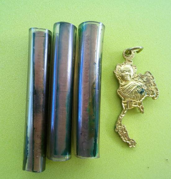 A1996.วัดใจของขลัง ตะกรุด ชุด3 ดอก ไม่ทราบเกจิ เคาะดียวเเดง |