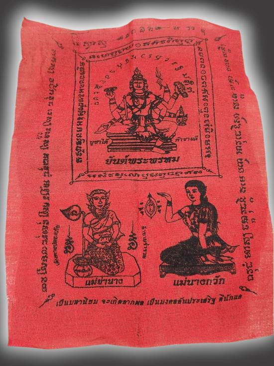 A5365.ผ้ายันต์พระพรหม แม่ย่านาง แม่นางกวัก ไม่ทราบที่ เคาะเดียวเเดง |