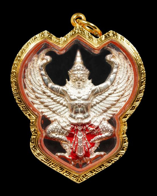 พญาครุฑ รุ่นโคตรรวย พระอาจารย์วราห์ วัดโพธิทอง เนื้อเงิน ตอกโค๊ด ว รัศมี ปี 2537 สวยกล่องเดิม |