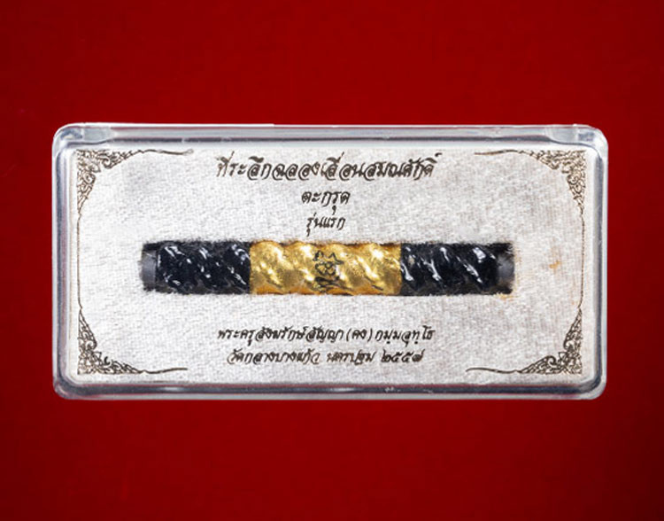 ตะกรุดหลวงพ่อแก้ว วัดพวงมาลัย เนื้อใบลานถักเชือกลงรัก จังหวัดสมทรสงคราม(ขนาด 2.3 ซม. เลี่ยมทองพร้อมบัตรสวยเดิม |