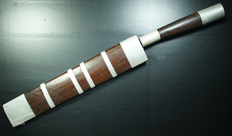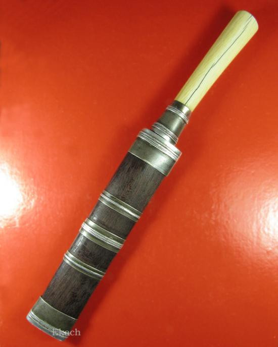 มีดหลวงพ่อกวย ใบเหล็กผสม ด้ามไม้ ฝักไม้ ความยาวรวม 13 นิ้วกว่าๆ ครับ |