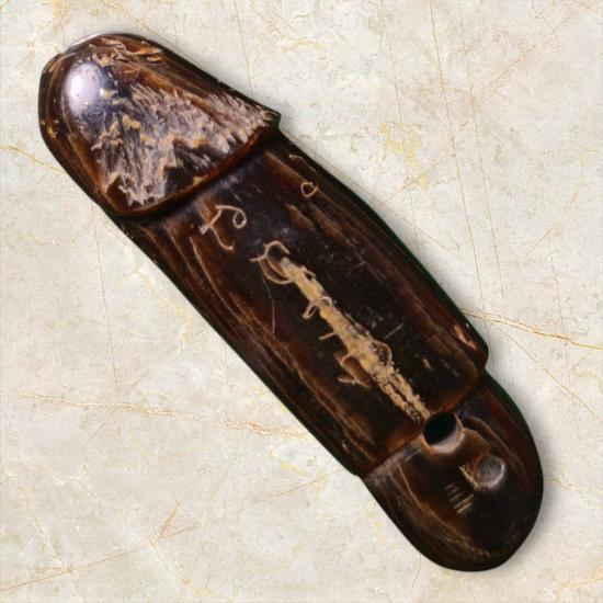 A5370.เครื่องรางของขลัง ไม้เเกะ นกสาริกาเล็ก จารย์ยันต์ ปิดทอง ไม่ทราบที่ เคาะเดียวเเดง |