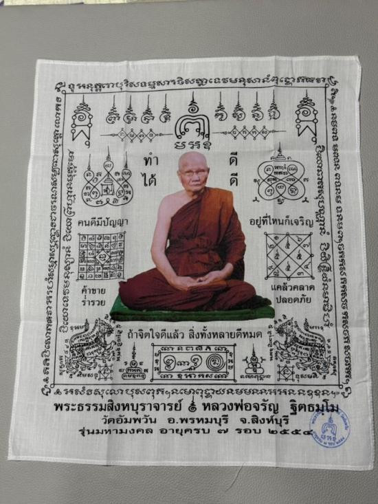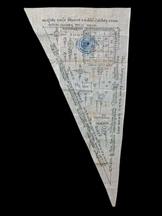 ผ้ายันต์ชายธง หลวงพ่อกลั่น วัดอินทราวาส อ่างทอง ขนาดยาว 19 นิ้ว สวยครับ |