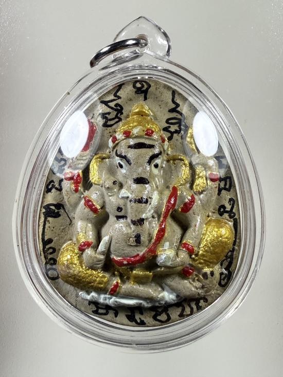 เคาะเดียว 400 พระพิฆเนศ พระอาจารย์อึ่ง วัดเซิงหวาย จ.กรุงเทพ หลังฝั่งเหรียญหลวงพ่อผลฯ เนื้อผงมวลสารเพ้นท์สี จารยันต์ พร้อมเลี่ยม |
