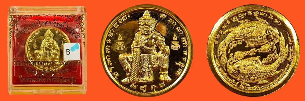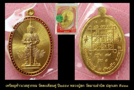 ท้าวเวสสุวรรณ วัดตะเคียนคู่ รุ่น 1 กฐิน 59 จ.ชลบุรี หลวงปู่ฮก ปลุกเสก เนื้อทองฝาบาตร #431