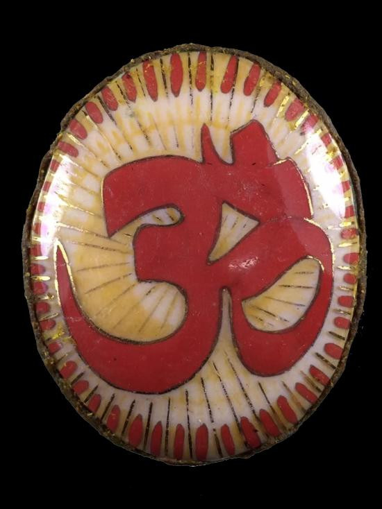 วัดใจ 130 หลายรายการ... ล็อกเก็ตโอม หลังอุดผงมวลสารโรยพลอย ขนาดประมาณ 3ซม |