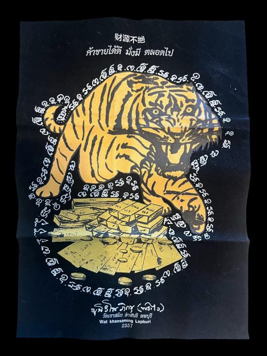 ผ้ายันต์เสือตะปบทรัพย์ ค้าขายได้ดี มั่งมี ตลอดไป หลวงพ่อไว วัดเขาสมิง ลพบุรี |