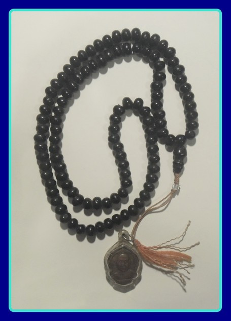 ของเก่า พร้อมเหรียญ -300-ประคำผงใบลาน จ่มรักดำ หลวงพ่ออุตตมะ วัดวังวิเวการาม จ.กาญจนบุรี |