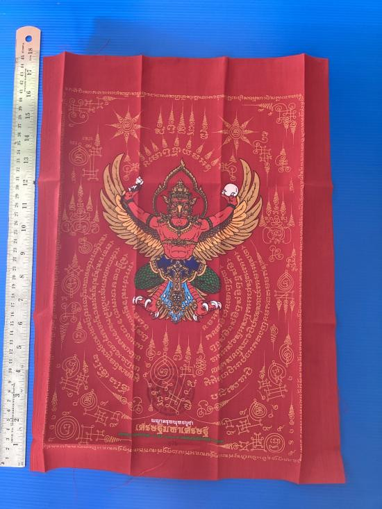 เคาะเดียวแดง 100 ผ้ายันต์ พญาครุฑ รุ่นเศรษฐีมหาเศรษฐี วัดครุฑธาราม จ.อยุธยา สีแดง ขนาด A3 ( 11.5 นิ้ว x 16.5 นิ้ว ) |