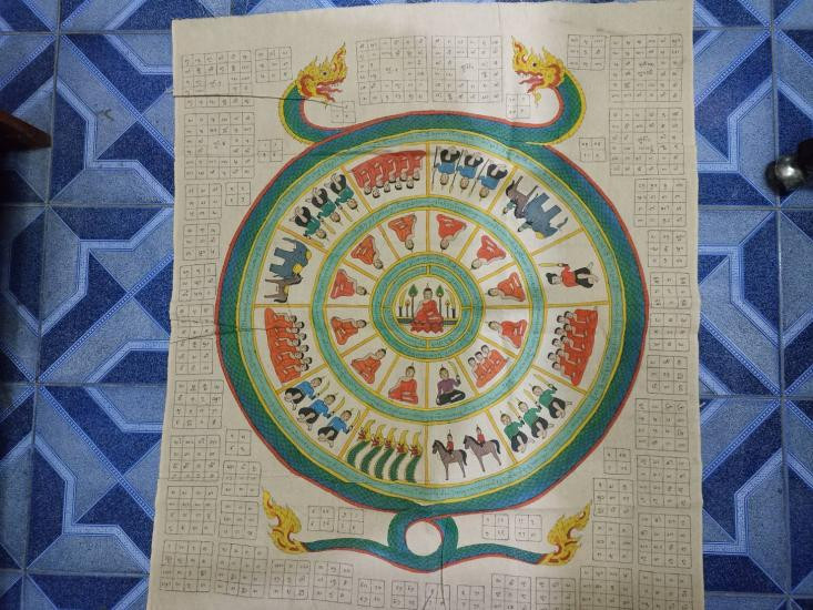 ธงผ้ากาสาวพักตร์ (ธงพระรัตนจักร) หลวงปู่ชื้น พุทธสโร วัดญาณเสน #กันภัยพิบัติ ขนาด 6X6.5 นิ้ว ช่วงปี 2500 หลังจากที่หลวงปู่ชื้นท่านใด้สำเร็จตามคำสอนของพระอาจารย์เสน เตชธัมโม(อาจารย์เต) หลวงปู่ท่านใด้พร