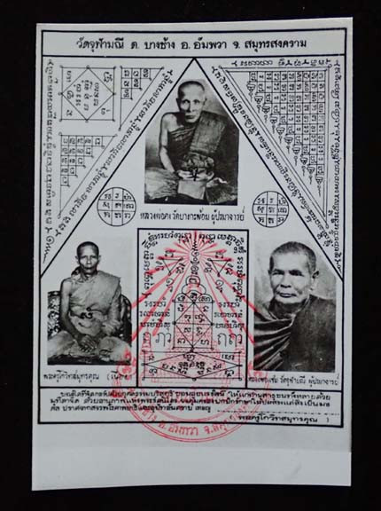 **** ทุกวันอาทิตย์ ตั้งปิดที่หนึ่งร้อย **** รูปขาวดำ 3อาจารย์ (ลพ.คง วัดบางกะพ้อม/ลพ.แช่ม โสฬส/ลพ.เนื่อง) ปั๊มยันต์หมึกแดง หลวงพ่อเนื่อง วัดจุฬามณี จ.สมุทรสงคราม ปี 2511 (ขนาด 5.5 x 8 ซม) สวย..สมบูรณ์ |