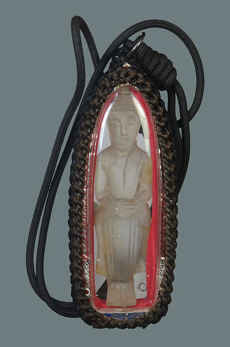 วัดใจ**เครื่องราง พระแก้วจุยเจีย ปางถวายเนตร ยุคเชียงแสน เลี่ยมกรอบ ถักเชือกพร้อมใช้ หายาก....สวยครับ |