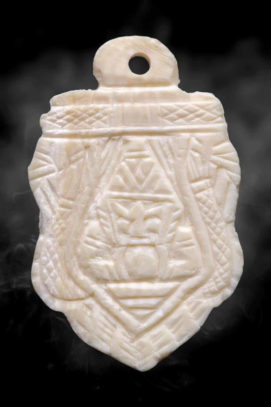 ยุคต้น ปี2470 ตัวจริง (หลวงพ่อเดิม วัดหนองโพ) "สิงห์ งาแกะ" ไม่มีแตกหัก "ดูง่ายๆ กระเช้าทอง โบราณ" |
