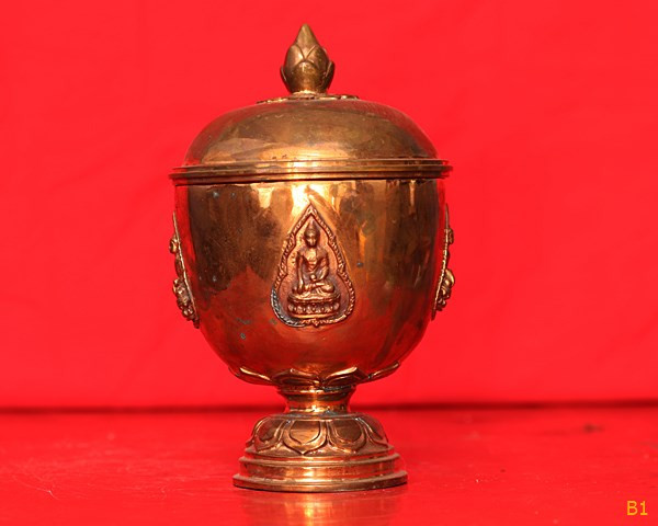 ยุคต้น ปี2470 ตัวจริง (หลวงพ่อเดิม วัดหนองโพ) "สิงห์ งาแกะ" ไม่มีแตกหัก "ดูง่ายๆ กระเช้าทอง โบราณ" |