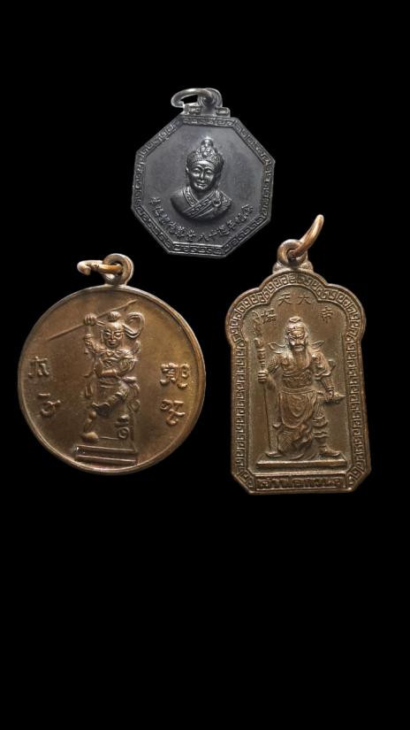 **100.** (3 เหรียญ) เหรียญไต้ฮงกง พิมพ์เล็ก + เหรียญเจ้าพ่อกวนอู วัดพนัญเชิง จ.พระนครศรีอยุธยา + เหรียญเทพนาจา ศาลเจ้านาจาไท่จื้อ หาดใหญ่ รุ่นแรก |