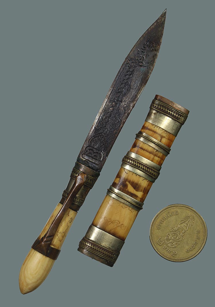 วัดใจ**เครื่องราง มีดหมอเก่า ด้ามเนื้องา+ฝักงาแกะ ยาว 4.5นิ้ว สภาพสมบูรณ์....สวยครับ |