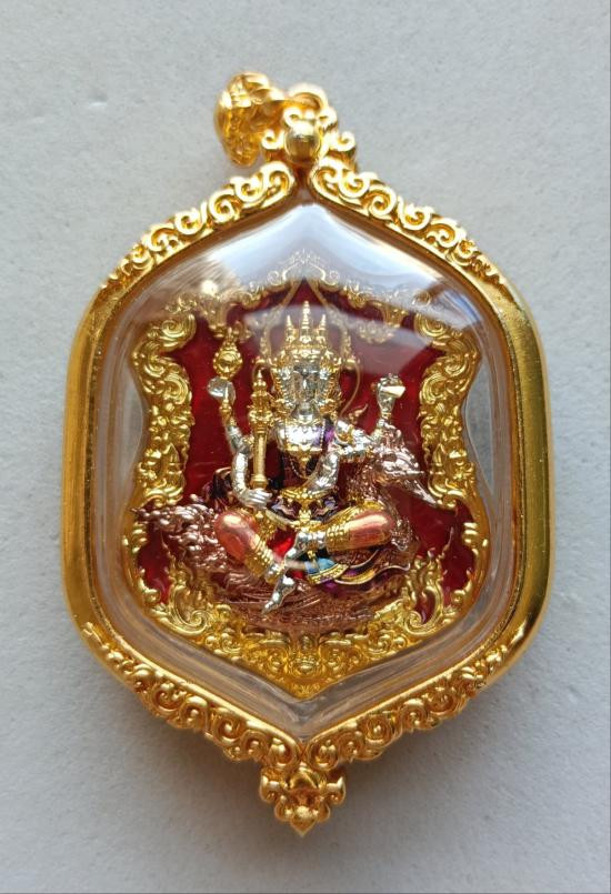 วัดใจเคาะเดียวแดงจ้า เหรียญพระพรหมประสิทธ์พุทธศิลป์ เนื้อบรอนซ์ชุบทองลงยาแดง พระพรหม3Kลงยา พร้อมเลี่ยมกรอบพุทธศิลป์กันน้ำ เคาะเดียวแดงจ้า |