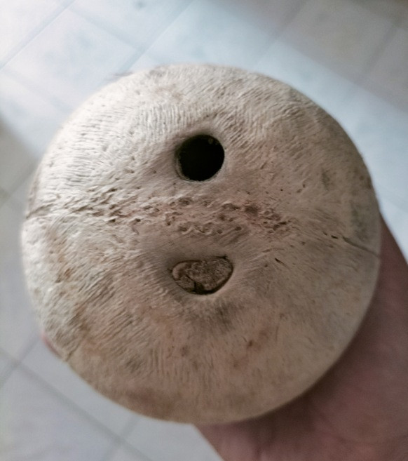 เคาะเดียว ไม่แพง พระราหูแกะจากกะลาเผือก ด้านหลังมีรอยจารเต็ม ไม่ทราบที่ ไม่ทราบเกจิครับ |