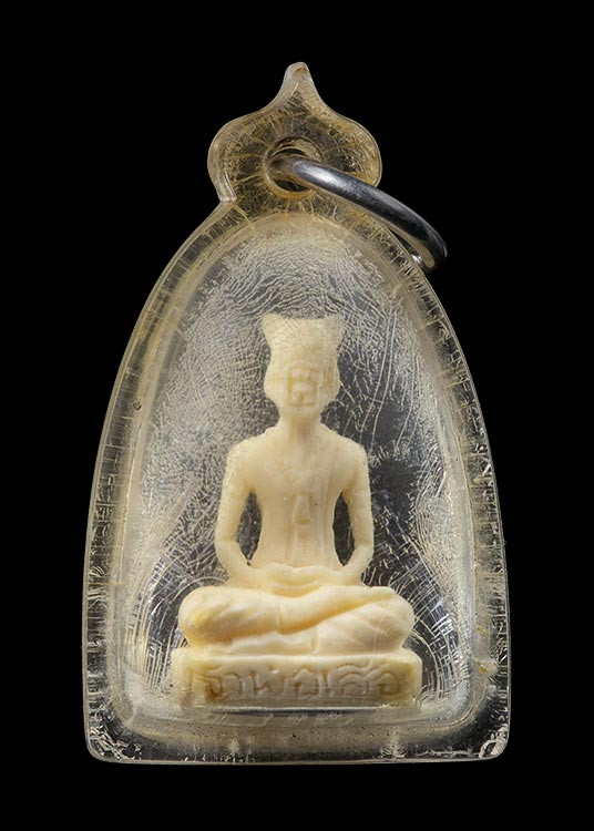 ไม่แพง เคาะเดียว เครื่องรางเหล็กไหล หลวงพ่อหวล วัดพุทไธศวรรย์ จ.พระนครศรีอยุธยา พิมพ์พระพุทธ เนื้อเหล็กไหลสีเงินยวง |