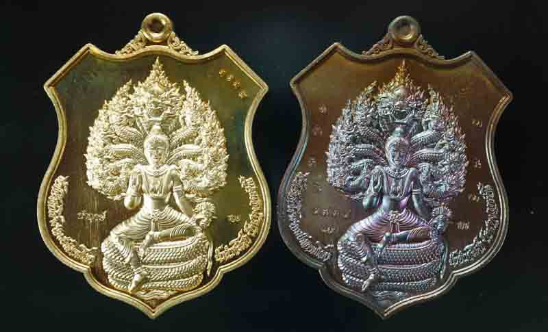 พญาศรีสัตตนาคราช นาคบาศ คุ้มดวง ร่ำรวย ปี 60 เนื้อทองแดง วัดไตรมิตร จ.นครพนม เลข 443 สวย-กล่องเดิม |
