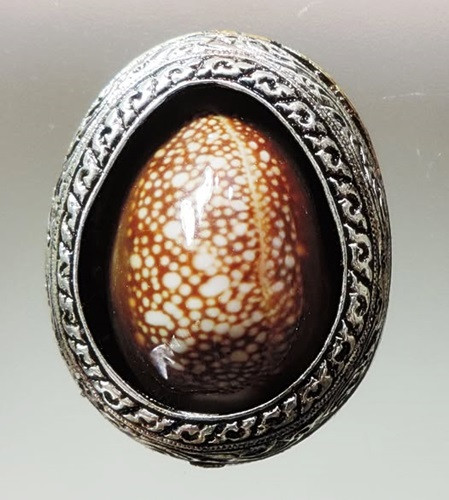 เบี้ยแก้ลูกเล็กเลี่ยมเงินแกะลายโบราณเก่า |