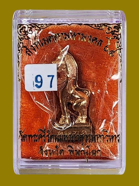 สิงห์เมตตามหามงคล เนื้อทองแดง( ทองชมพู ) เลข 97-สุดยอดเครื่องรางของขลัง รุ่นแรก ของวัดพระศรีรัตนมหาธาตุวรมหาวิหาร พิษณุโลก วัดจัดสร้างเอง |