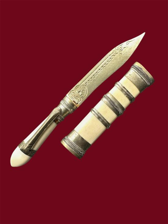 มีดหมอยุคแรก"จักรนารายณ์" หลวงพ่อประเทือง วัดหนองย่างทอย ด้ามและฝักงา ขนาด 4.5 นิ้ว จ.เพชรบูรณ์ |