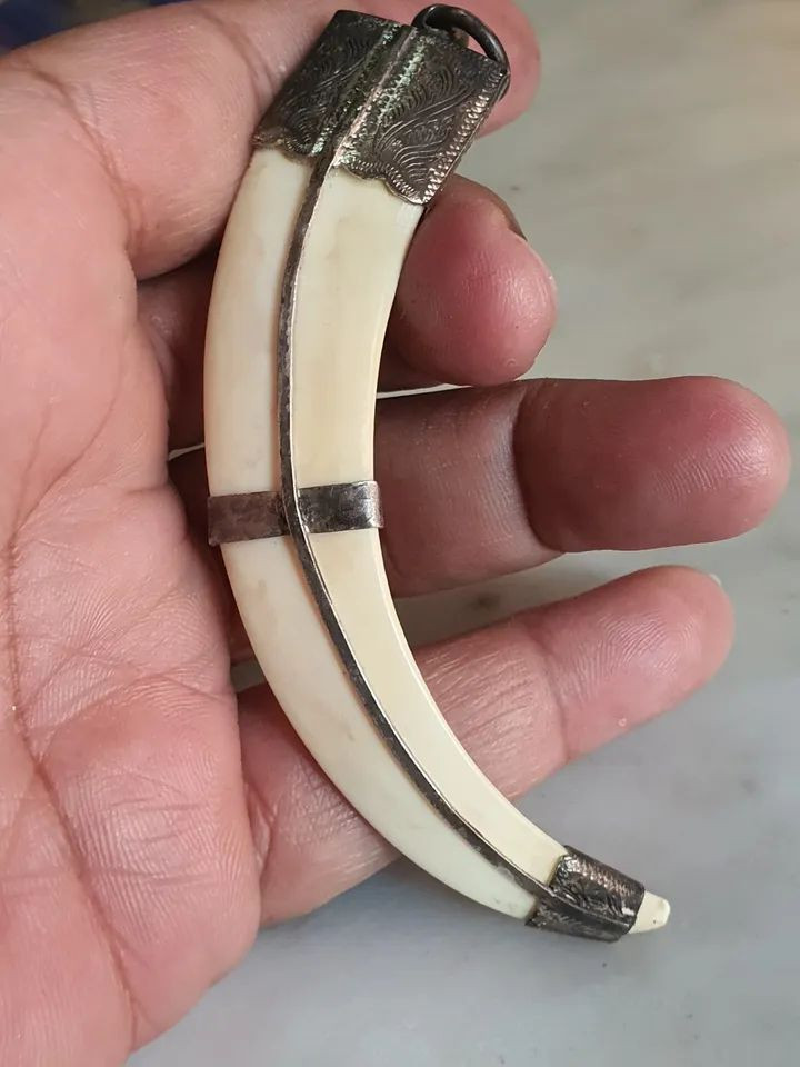 เขี้ยวเสือซีกแกะรูปเสือ เก่าสวยมีรอยจาร |