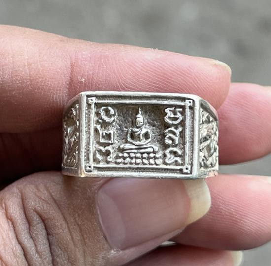 แหวนทรงมอญ (หลวงพ่อฤาษีลิงดำ) วัดท่าซุง เนื้อเงิน หัวเพชรเขาพระงาม หรือเขี้ยวหนูมาน ขนาดเส้นผ่านศูนย์กลาง 2 ซม. ไม่ทราบปีสร้าง |