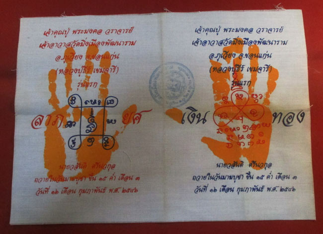 ผ้าจีวรหลวงปู่ดู่ ปั๊มตรายันต์ตุ๊กตา (ยันต์องค์พระ) หลวงปู่ดู่ เมตตาอธิฐานจิตปลุกเสกราว ปี 2531-2532 วัดสะแก อยุธยา |