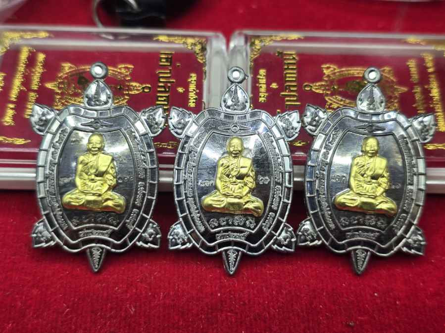 เคาะเดียวแดง 100 ( 3 องค์ ) ลอยองค์ น้องข้าวจี่ รุ่น มีเงินล้าน วัดธรรมชัยมงคล จังหวัดเชียงใหม่ สูง 2.2 ซ.ม. เนื้อสัมฤทธิ์ชุบเงิน 2 องค์ , สัมฤทธิ์ชุบทอง 1 องค์ |