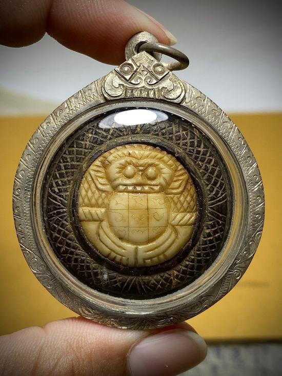 ราหูอมจันทร์ กะลาตาเดียวแกะครอบงาแกะ เลี่ยมพร้อมใช้ หลวงปู่ญาท่านสวน ฉนฺทโร วัดนาอุดม จ.อุบลราชธานี |