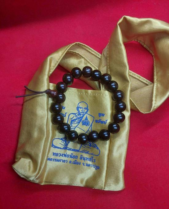 ***วัดใจ***ถุงผ้า/ย่ามเล็กที่ระลึกจากหลวงพ่อน้อย อินฺทสโร วัดธรรมศาลา อ.เมือง จ.นครปฐมกับ ประคำข้อมือ ((ไม้พยุง 10 มม.)) ไม้มงคลหายาก |