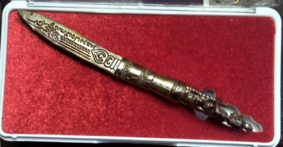 มีดขนาดปากกา ด้ามR ฝักRใบเหล็กตะปู จากโบสถ์วัดทำนบ ที่หลวงพ่อเดิมวัดหนองโพธิ์สร้าง |