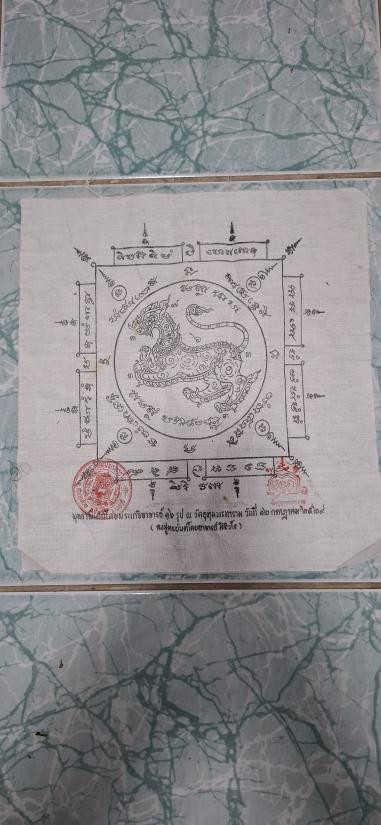 ผ้ายันต์"บรมครูปู่ฤาษีเปิดโลก นะมหาเศรษฐี เสือนอนกิน" หลวงปู่นอง วัดวังสีทอง จ.สระแก้ว |