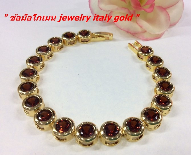 **ปีใหม่-เทขาดทุน**กำไลข้อมือโกเมนยาว 7.นิ้ว งานจิวเวลลี่ชุบทองแท้ เสริมความปัง ความรวย |