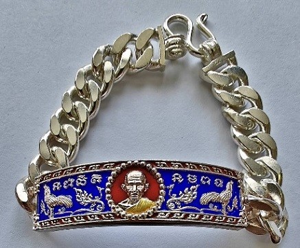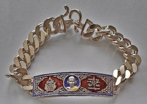หลวงพ่อรวย วัดตะโก จ.อยุธยา เลสข้อมือ รุ่น เลื่อนสมณศักดิ์ ปี59เนื้อเงินลงยาหน้าทองคำขนาด4บาท นิยม |