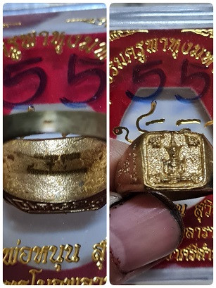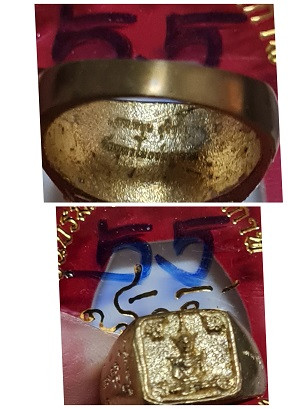 แหวนพระไตรสรณคมน์อันตรายาปิ ขนาดแหวนเบอร์ 55 หลวงพ่อหนุน วัดพุทธโมกข์ สกลนคร |