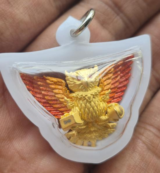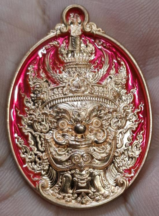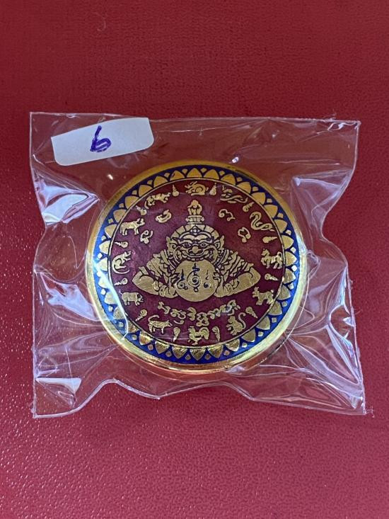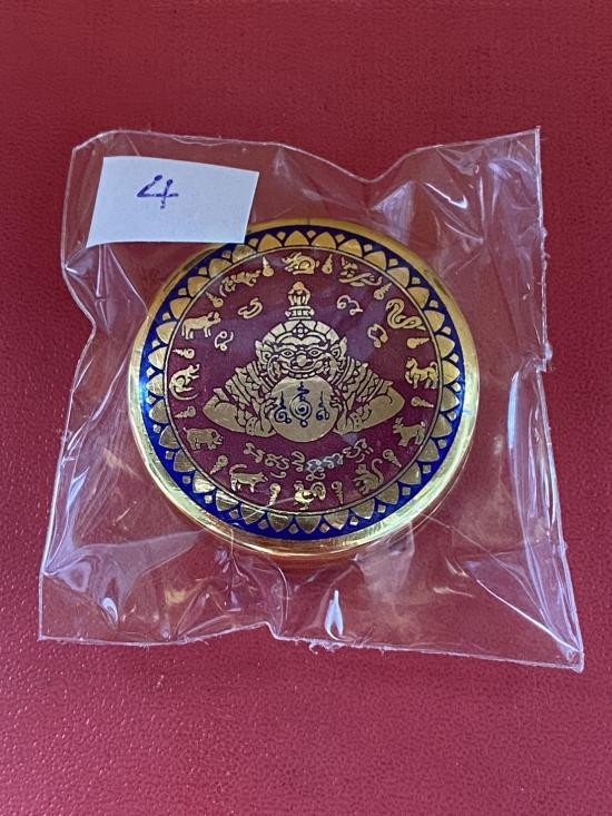 เคาะเดียวแดง สีผึ้งพระราหู รุ่น มงคลจักรวาล เนื้อ โลหะชุบทองลงยาสีแดงขอบสีน้ำเงิน ขนาด3.2ซม |