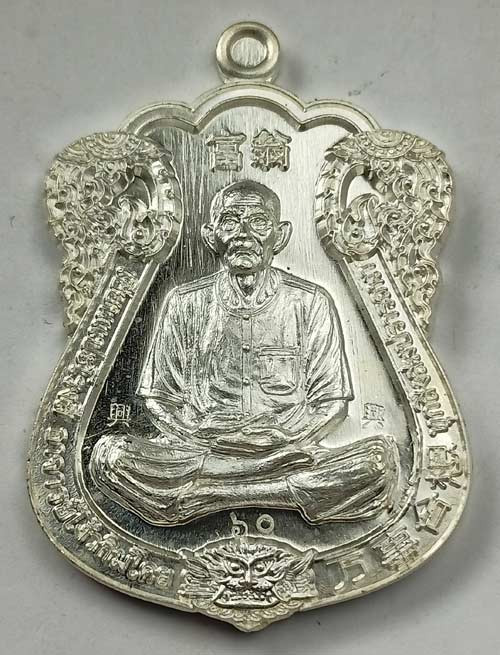 (เลข2หลัก เบอร์ 60) เหรียญเสมาหัวเสือ เซียนแปะโรงสี อาจารย์โง้วกิมโคย รุ่นรวยพันล้าน (หลวงพ่อหยัด) วัดลำกะดาน เนื้อเงิน เบอร์ 60 พร้อมกล่องครับ (เหรียญจริงใหญ่ ขนาด4x3ซม. น้ำหนัก23.41กรัม) |