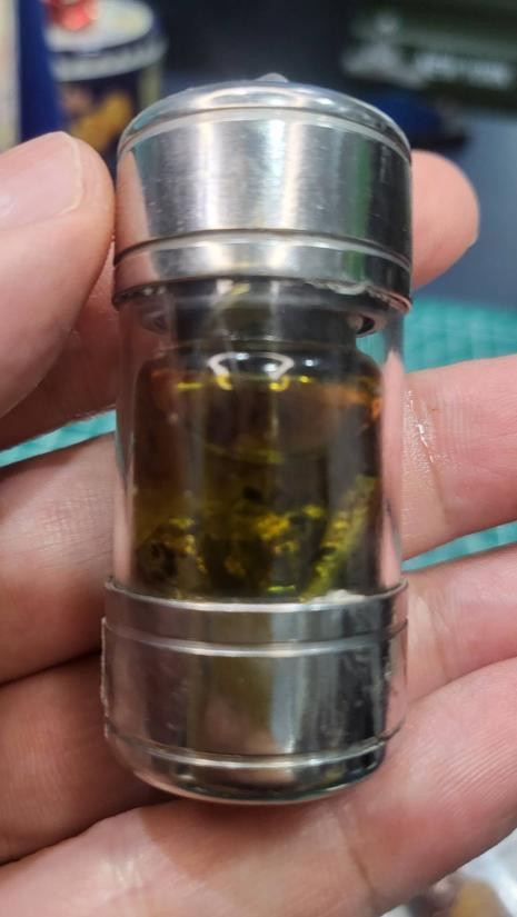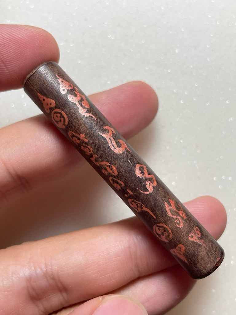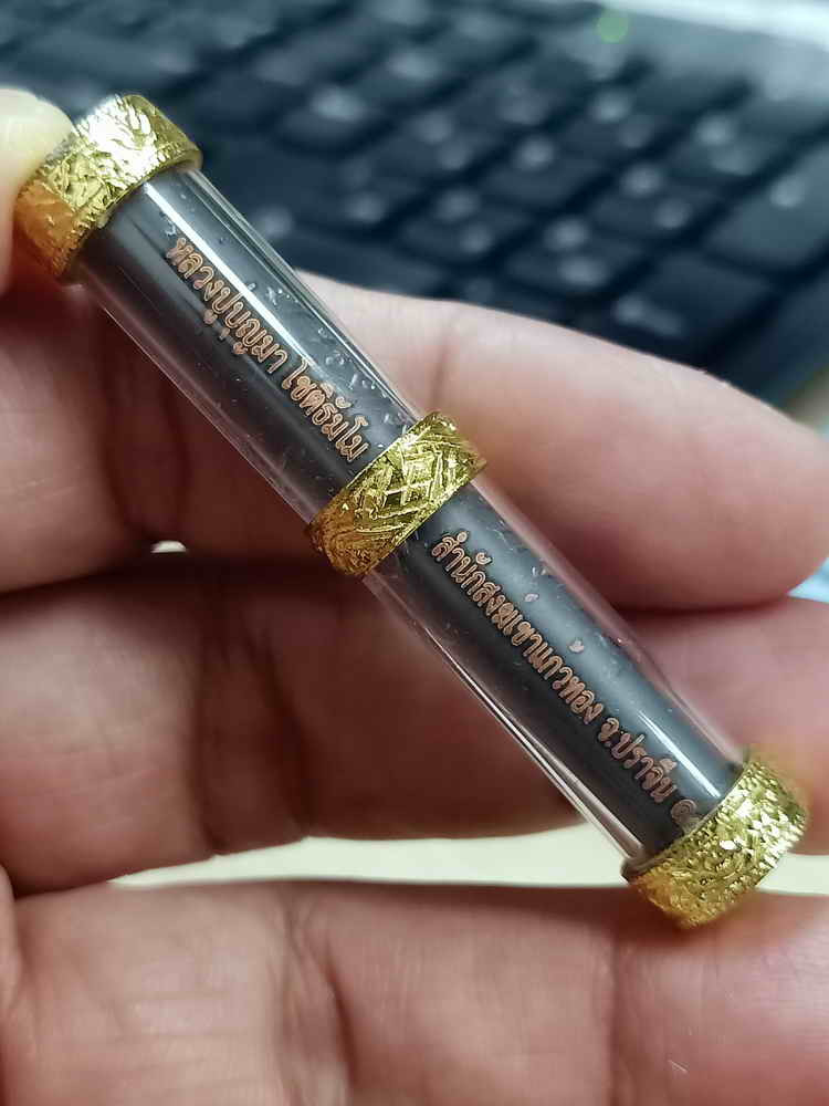 ตะกรุดหล่อโบราณ สร้างบารมี ๒๕๕๙ หลวงพ่อปกรณ์ วัดถ้ำผาแด่น จ.สกลนคร เนื้อทองระฆ้ง ใส้ตะกรุดสีเงิน สวยๆครับ |