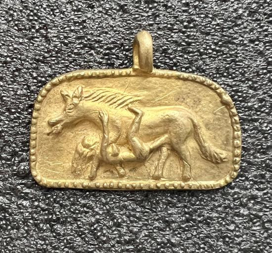 **แดง100***เหรียญจอบม้าเสพนาง เนื้อสตางค์ (ไม่ทราบที่) มีจารหน้า หลัง ครับ |