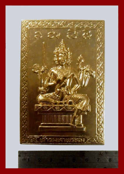 สวยมาก-100-แผ่นปั้มท้าวมหาพรหม หลังแบบ "นะ ชา ลี ติ " เนื้ออลูมิเนี่ยมกะไหล่ทอง ขนาด 7+11 ซม. |