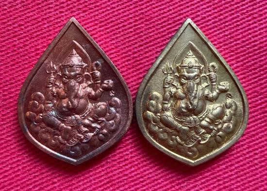 วัดใจไปเลย เหรียญพระพิฆเนศ สมปรารถนา หลวงปู่นนท์ วัดเหนือวัน ปี 2545 เนื้อทองแดงและเนื้อทองฝาบาตร |