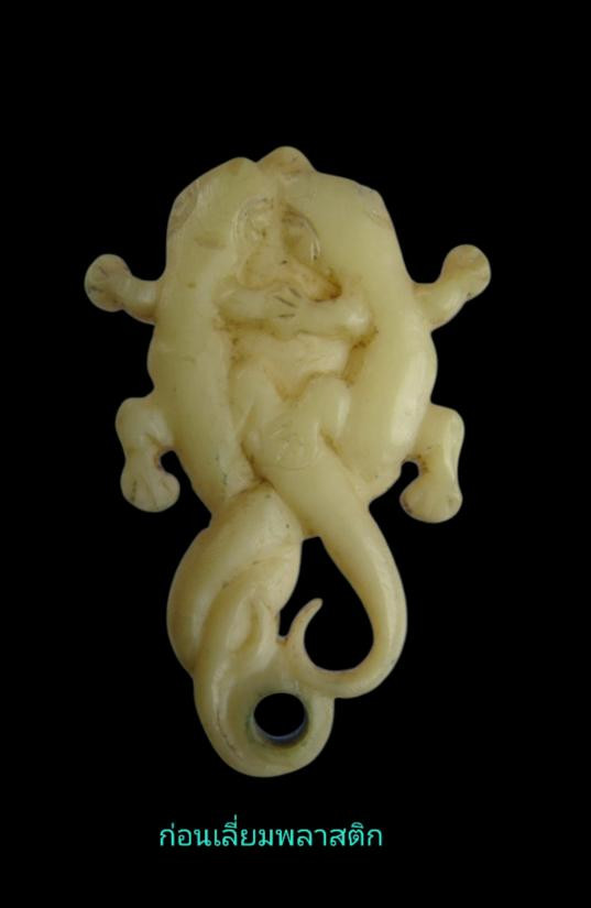 จิ้งจก งาแกะ 3 เกี้ยว หลวงพ่อหน่าย วัดบ้านแจ้ง อยุธยา จารมือ |